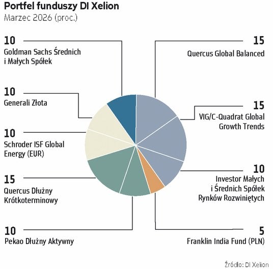 W dłużnej części portfela zmniejszyliśmy durację, lokując 15 proc. środków w Quercusie Dłużnym Krótkoterminowym. W części akcyjnej zredukowaliśmy z kolei pozycję na rynkach wschodzących oraz w Polsce, gdzie nasz target wynikowy na cały kwartał został osiągnięty już w lutym. W celu zabezpieczenia kluczowego ryzyka związanego ze wzrostem cen surowców energetycznych, dodajemy do portfela Schroder ISF Global Energy (EUR). Liczymy się z tym, że w przypadku deeskalacji pozycja ta może przynieść stratę, jednak zakładamy, że w takim scenariuszu reaktywacja trybu risk-on będzie wsparciem dla pozostałej części portfela akcji, który po zmianach – i po wyłączeniu Schroder ISF Global Energy – efektywnie stanowi około 45 proc. całości portfela. Nie wykluczamy, że w kwietniu powrócimy do zwiększonej alokacji w akcje, gdy obraz konfliktu na Bliskim Wschodzie będzie bardziej klarowny, a także gdy poznamy najświeższe odczyty naszych kwartalnych modeli prognostycznych uwzględniających ostatnie zmiany, m.in. na rynkach długu i surowców.