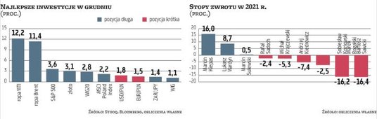 Z kolei Michał Krajczewski z BM BNP Paribas szansę widzi w sWIG80, tłumacząc, że dwie fale spadkowe z listopada oraz połowy grudnia doprowadziły do ok. 10-proc. przeceny tego indeksu. – Równocześnie na wykresie obserwujemy pozytywne dywergencje kursu ze wskaźnikami analizy technicznej, co wraz z korzystną sezonowością (tzw. efekt stycznia) może być argumentem za odbiciem w najbliższych tygodniach – mówi Krajczewski.