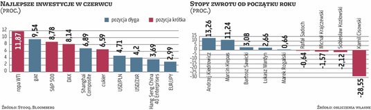 Niełatwy był również czerwiec, w którym dobrze sprawdzały się krótkie pozycje na indeksach w Polsce i na Zachodzie. Analitycy typujący do portfela inwestycyjnego „Parkietu”, którzy obstawili spadki S&P 500 czy DAX, zyskali po ponad 8 proc. Dobrze poradziły sobie za to długie pozycje na azjatyckich indeksach.