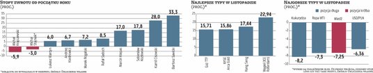 Kurs ropy WTI w listopadzie osunął się o niemal 10 proc. i osiągnął dziesięciomiesięczne dno. Zadomowienie się ceny baryłki surowca poniżej 75 USD jest mało prawdopodobne ze względu na aktywne zarządzanie wydobyciem przez OPEC+ oraz potrzebę odbudowy strategicznych rezerw w USA.