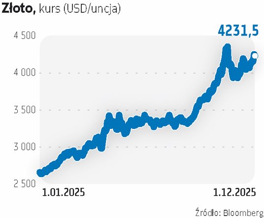 Ceny złota powinny rosnąć, wspierane przez rosnące oczekiwania rynkowe dotyczące obniżek stóp procentowych przez Fed oraz słabszego globalnie dolara. Wzrosty mogą być również napędzane przez utrzymujący się popyt ze strony banków centralnych, kupujących kruszec w ramach dywersyfikacji portfeli rezerw.