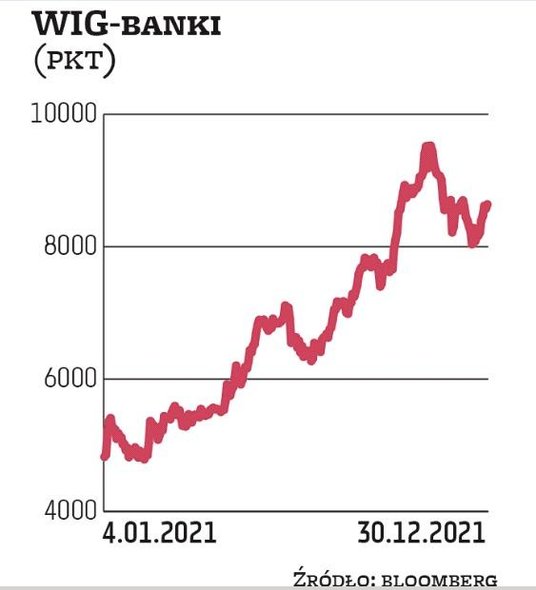 Był to oczywiście jeden z najlepszych okresów w giełdowej historii spółek finansowych. Tuż za bankami uplasowały się w 2021 r. przedsiębiorstwa odzieżowe, a następnie motoryzacyjne. Najlepsze banki w ubiegłym roku urosły nawet trzycyfrowo. Liderem tej grupy okazał się Alior Bank, a za nim Millennium i mBank, a więc firmy z mWIG40. Bank Handlowy, który znalazł się w propozycjach do portfela technicznego na styczeń, zyskał w 12 miesięcy około 72 proc., co dało mu miejsce w środku grupowej tabeli.