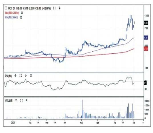 PCC Exol wytypował na lipiec Sobiesław Kozłowski, ekspert Noble Securities. – Cena akcji spółki jest w silnym trendzie wzrostowym od przełomu lutego i marca. Podmiot jest beneficjentem pandemii w wyniku wzrostu popytu na środki powierzchniowo czynne. Układ wskaźników technicznych sprzyja popytowi: oscylator stochastyczny dopiero wchodzi w strefę wykupienia, co sprzyja technice strzału stochastycznego, natomiast wskaźnik trendu RSI znajduje się w obszarze neutralnym plus. Wzrost wartości obrotów zdaje się uwiarygodniać działania popytu – tłumaczył swój wybór miesiąc temu Kozłowski. Ekspert zdawał sobie sprawę z podwyższonej zmienności notowań. – Korekty w trendzie wzrostowym są o relatywnie zbliżonej skali, tj. 42 proc. w drugiej połowie marca, 31 proc. w kwietniu i 35 proc. w na przełomie maja/czerwca, tak jak odbicia, tj. 109 proc. w marcu oraz 102 proc. w kwietniu/maju – wyliczał. Te wahania utrzymały się także w lipcu. Relacja ATR((22) do ostatniej ceny zamknięcia wynosi w przypadku PCC Exol aż 16,1 proc. To zdecydowanie najwyższy wynik w lipcowym zestawieniu. Co ciekawe – na pierwszej sesji marca spółka utrzymywała podwyższoną zmienność. W poniedziałek przed południem cena rosła o 12,7 proc., do 9,08 zł.