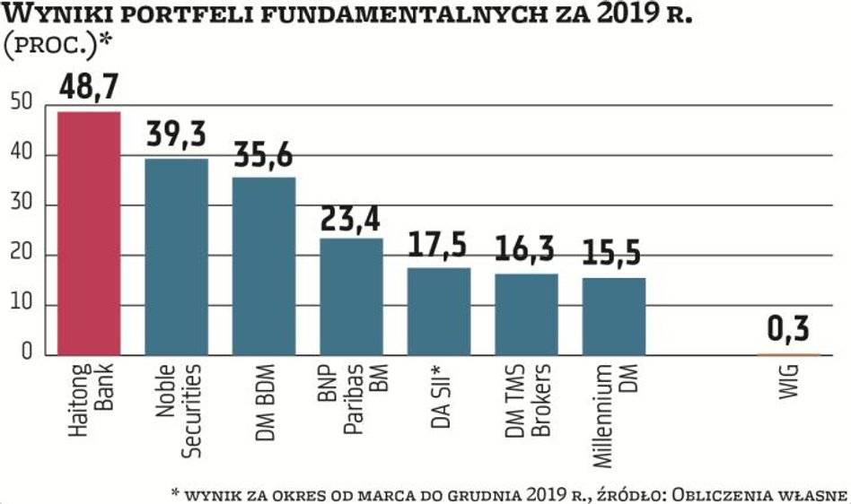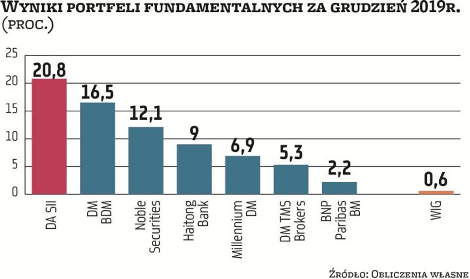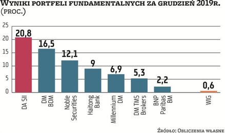 Wszystkie biura maklerskie biorące udział w organizowanej przez „Parkiet" rywalizacji portfeli fundamentalnych w 2019 roku poprawiły swój stan posiadania. Ich dokonania w porównaniu z szerokim rynkiem prezentują się imponująco.