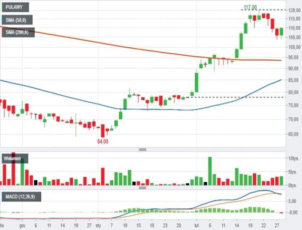 Przypomnijmy, że w typowaniu spółek do lutowego portfela udział wzięło ośmioro analityków. Dwóch wskazało tę samą spółkę – Energę – dlatego w zestawieniu znalazło się siedem podmiotów notowanych na GPW. Wspomniana Energa miała oczywiście największą wagę, ale jej notowania otworzyły i zamknęły okres rozliczeniowy dokładnie na takim samym poziomie, więc nie miała ona istotnego wpływu na wynik końcowy. Z pozostałych sześciu spółek pięć przyniosło dodatni stopę zwrotu, o średniej wielkości 12,3 proc. Najlepszym wskazaniem okazały się Zakłady Azotowe Puławy, wytypowane przez Sobiesława Kozłowskiego z Noble Securities (szczegóły na kolumnie obok). Chemiczna spółka wypracowała wynik 35,9 proc. Co ciekawe – opłacało się stawiać na przedstawicieli tej branży. Wytypowana przez Bartosza Sawickiego z TMS Brokres Grupa Azoty przyniosła zysk rzędu 22,86 proc. Dodajmy, że WIG-chemia jest w silnym trendzie wzrostowym od października 2018 r. i w lutym jego notowania znalazły się najwyżej od czerwca 2018 r. Można więc powiedzieć, że świetny wynik lutowego portfela to w dużej mierze zasługa podłączenia się pod trend panujący wśród chemicznych spółek.
