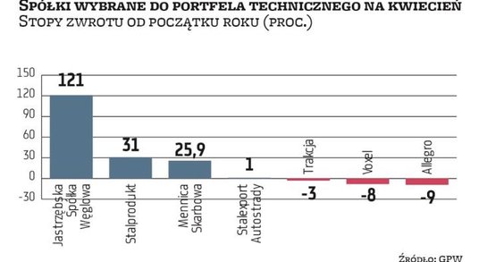 Na krajowym rynku jednym z głównych tematów inwestycyjnych w marcu były firmy węglowe, co również ma związek z sytuacją Ukrainy oraz potencjalnym ograniczeniem tempa transformacji energetycznej w Polsce. Gwiazdami portfela technicznego w zeszłym miesiącu były Jastrzębska Spółka Węglowa oraz LB Bogdanka. Na pierwszą z nich postawił Michał Pietrzyca z DM BOŚ, zaś na drugą Piotr Kaźmierkiewicz z BM Pekao. Obaj zyskali po ponad 40 proc. Silną propozycją okazał się także Cognor wskazany przez Piotra Zająca z CMC Markets, a także Tauron, który znalazł się w portfelu technicznym Sobiesława Kozłowskiego z Noble Securities. Średni wynik portfela technicznego sięgnął w marcu około 18 proc., czyli znacznie więcej od indeksu szerokiego rynku.