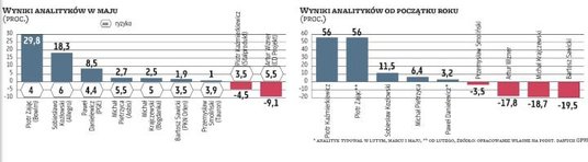 W nieco szerszej perspektywie według Przemysława Smolińskiego z BM PKO BP najbliższe sesje mogą okazać się kluczowe dla zachowania rynków w średnim terminie. – Zarówno bowiem S&P 500, jak i WIG20 wykonały w ciągu ostatnich dwóch tygodni ruchy powrotne do przełamanych wsparć na poziomie minimów z początku roku. Czekamy obecnie na rozstrzygnięcie, czy uda im się wyjść powyżej nich i kontynuować korekcyjne odbicie, czy też na rynek powrócą wcześniejsze spadki – przyznaje Smoliński.
