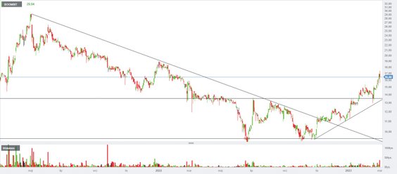 BoomBit dość szybko zbliża się do maksimów z zeszłego roku, ukształtowanych na poziomie 19,4 zł. Tak wysoko akcje producenta gier były jednak tylko na początku 2022 r. paan