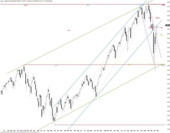 – Po obronie na S&P 500 średnioterminowego wsparcia Fibonacciego: 4820–4935 pkt (wytyczonego między innymi na bazie symetrii i zniesienia 5 proc.) popyt w spektakularny sposób przejął inicjatywę na rynku – wskazuje Paweł Danielewicz z BM Santander. – W efekcie po kolejnej, udanej dla byków sesji piątkowej mamy obecnie do czynienia z naruszeniem zniesienia 61,8 proc. (poziom 5646 pkt) i przebiegającej w pobliżu dolnej linii kanału. Jeśli indeks utrzyma się teraz ponad wskazanym rejonem, to obóz byków powinien w dalszym ciągu wykazywać się większą aktywnością – nawet uwzględniając tutaj możliwość powrotu do bazowego, średnioterminowego oporu: 6145–6160 pkt (w lutym doszło w tym rejonie do wzrostu presji podażowej) – ocenia Danielewicz. Jak przyznaje, z kolei powrót indeksu poniżej najbliższego wsparcia 5498 pkt należałoby zinterpretować negatywnie. – Wydaje się, że to podaż dla odmiany mogłaby wówczas zacząć wytyczać kierunek gry – przewiduje analityk BM Santander.