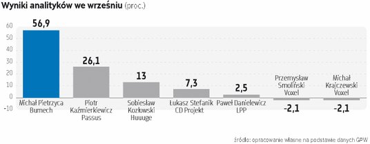 Mimo wielu ostrzeżeń wrzesień ostatecznie był bardzo dobrym miesiącem dla inwestorów. Z wybranych przez analityków przed miesiącem spółek aż trzy zyskały dwucyfrowo.
