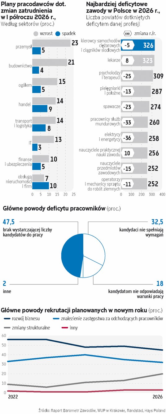 Danych za grudzień na razie nie ma, ale w końcówce roku trudno tam liczyć na odbicie. Co innego w 2026 r., gdy – jak wynika z barometru agencji zatrudnienia ManpowerGroup – już w I kwartale 36 proc. firm nastawia się na wzrost zatrudnienia, podczas gdy 13 proc. planuje je ograniczyć.
