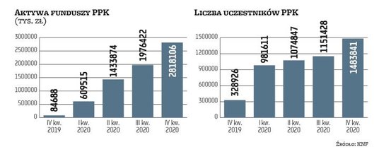 Według danych serwisu analizy.pl z końcem lutego aktywa PPK zbliżały się do 3 mld zł. Najwięcej kapitału udało się zebrać PKO TFI. Jak twierdzi jego zarząd, pierwsza pozycja nie jest zagrożona. – Według naszych szacunków jesteśmy i pozostaniemy liderami rynku PPK mierzonego zarządzanymi aktywami także w finalnym rozliczeniu całego programu, tj. po czerwcu tego roku – tłumaczy Piotr Żochowski, prezes PKO TFI. – Wedle najnowszych dostępnych danych (na koniec lutego) jesteśmy liderem rynku pod względem zarządzanych aktywów PPK z udziałem 33,9 proc. – przypomina. – Patrząc przez pryzmat liczby umów o zarządzanie, szacujemy, że około 12,5 tys. zawartych przez nas i aktywnych już umów z samorządami i jednostkami rządowymi stanowi ponad 30 proc. wszystkich w tej części IV etapu. To świetny rezultat, bo umacnia perspektywę utrzymania pozycji lidera po rozliczeniu całego programu PPK latem – analizuje prezes PKO TFI. – Na oceny faktycznego udziału w rynku w IV etapie jest oczywiście jeszcze za wcześnie. Udział ten mierzony jest bowiem nie liczbą samych zawartych umów, ale liczbą uczestników i wpłat, których dokonają – podkreśla Żochowski.