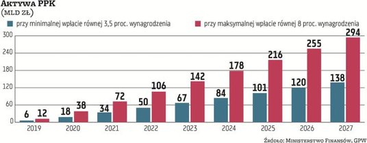 Według szacunków ekspertów rynku kapitałowego co roku na giełdę może dzięki PPK napływać kilkanaście miliardów złotych. Te pieniądze mogą zachęcić kolejne firmy do wejścia na warszawski parkiet. – Spółki obserwują to, co dzieje się na giełdzie. Brak kapitału powodował, że wycena oferowanych na niej akcji jest niska. Wyższe wyceny związane z dopływem nowego kapitału sprawią, że zainteresowanie giełdą będzie większe – uważa ekspert Pocztyliona. Przypomina, że podobny efekt był widoczny po uruchomieniu OFE.