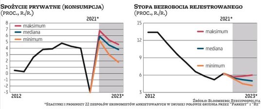– Mamy mocne poczucie, że niepewność jest większa niż nawet w ostatnich, pandemicznych latach. Tym razem nasze prognozy są bliskie przeciętnych, ale czujemy się jak dzieci we mgle. Tak wielu pytań dotyczących mechanizmów funkcjonowania gospodarki w Polsce nie było od czasu transformacji ekonomicznej, a na świecie od czasu szoku energetycznego z lat 70. XX w. – powiedział Piotr Bujak, główny ekonomista PKO BP, w trakcie noworocznej debaty „Parkietu" (jej pełny zapis opublikujemy za tydzień). – Jaka będzie polityka fiskalna? Nie wiemy. Polityka pieniężna? Niepewna. Uwarunkowania geopolityczne? Niejasne. Notowania surowców? Nieprzewidywalne. Zachowanie konsumentów w reakcji na inflację? Trudno powiedzieć – wtórował mu Jakub Borowski, główny ekonomista Credit Agricole Bank Polska. Na to wszystko nakłada się jeszcze pandemia. W 2021 r. kolejne fale zachorowań na Covid-19 w coraz mniejszym stopniu hamowały wzrost aktywności w polskiej gospodarce, a większość ekonomistów zakłada, że tak samo będzie w 2022 r. Nie można jednak wykluczyć, że nowe warianty koronawirusa, np. omikron, jeśli będą groziły przeciążeniem służby zdrowia, będą wymuszały przywracanie daleko idących restrykcji, które ponownie sparaliżują gospodarkę.