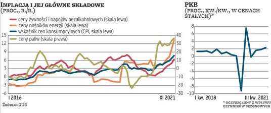 Takiej inflacji jak w listopadzie w tym stuleciu jeszcze w Polsce nie było. Jak oszacował wstępnie GUS, wskaźnik cen konsumpcyjnych wzrósł o 7,7 proc. rok do roku, najbardziej od grudnia 2000 r., po zwyżce o 6,8 proc. w październiku. Wynik ten przebił nawet skrajne prognozy ekonomistów. Niespodzianką okazały się również dane dotyczące wzrostu aktywności w polskiej gospodarce. W tej sytuacji Rada Polityki Pieniężnej prawdopodobnie uzna, że stopy procentowe należy nadal podnosić pomimo ryzyka, że nowy wariant koronawirusa schłodzi koniunkturę.