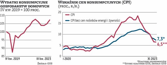 Konsekwencje widać w głównych kategoriach towarów i usług konsumpcyjnych. Wzrost cen żywności i napojów bezalkoholowych wyhamował tylko nieznacznie: z 7,9 proc. rok do roku w październiku do 7,2 proc. w listopadzie. Nośniki energii podrożały o 7,9 proc. rok do roku po 8,3 proc. miesiąc wcześniej. W poprzednich miesiącach dynamika cen żywności i nośników energii malała o co najmniej 1 pkt proc. miesięcznie.