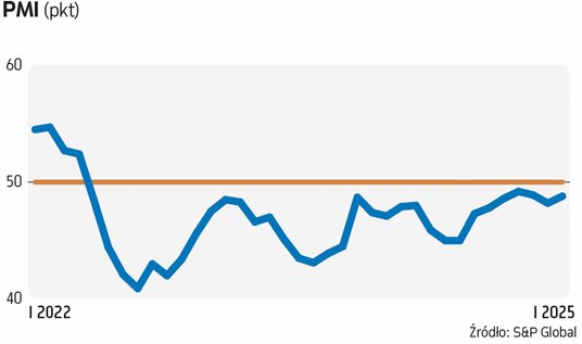 Styczniowy wynik PMI dla polskiego przetwórstwa 48,8 pkt jest zgodny z oczekiwaniami ekonomistów (średnia prognoz dla „Parkietu”: 48,7 pkt). Jest wyższy niż przed miesiącem (48,2 pkt), urósł pierwszy raz od trzech miesięcy. Jednocześnie jest jednak lekko niższy niż w październiku i listopadzie (kolejno 49,2 oraz 48,9 pkt). Wpisuje się więc w tendencję z ostatnich miesięcy, gdy waha się w granicach bliskich, ale jednak wciąż poniżej neutralnego poziomu 50 pkt (dopiero on oznaczałby poprawę koniunktury). Odwilż jednak w ciągu najbliższych kilku miesięcy w końcu powinna nadejść.