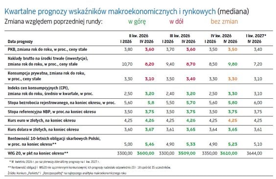 W warunkach wyższej inflacji, zdaniem „medianowego” analityka zniknęła przestrzeń do dalszego luzowania polityki pieniężnej przez RPP. Styczniowy konsensus zakładał cięcie głównej stopy NBP w drugim kwartale do 3,50 proc. i jej stabilizację do końca roku. W nowej rundzie obraz jest po prostu taki, że przynajmniej do marca 2027 r. RPP nie ruszy stóp procentowych.