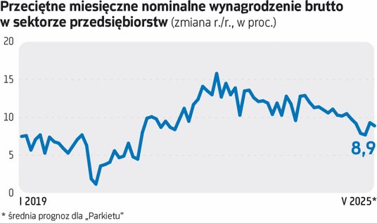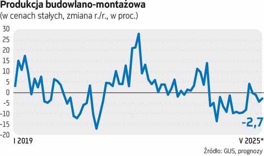 Z ożywieniem w inwestycjach sprawa wygląda swoją drogą ciekawie. Z jednej strony miesięczne dane o produkcji budowlano-montażowej są słabe. Kwietniowy odczyt -4,2 proc. r./r. był wyraźnie słabszy od prognoz ekonomistów. W całym okresie pierwszych czterech miesięcy 2025 r. też odnotowano spadek rok do roku, o 0,5 proc. O ile dane z budownictwa infrastrukturalnego wyglądają krzepiąco, o tyle rozczarowują inwestycje mieszkaniowe. Średnia prognoz ekonomistów na maj sugeruje kolejny spadek rok do roku, o 2,7 proc. Z drugiej strony, poniedziałkowe dane o strukturze wzrostu PKB Polski w pierwszym kwartale były zaskakująco dobre dla inwestycji, wskazując na ich wzrost o 6,3 proc. r./r., wyraźnie powyżej średniej prognoz ekonomistów (w poprzedniej ankiecie „Parkietu”): +2,3 proc. O ile w drugiej połowie 2024 r. wkład nakładów brutto na środki trwałe w tempo wzrostu gospodarczego był ujemny, o tyle teraz dodał 0,8 pkt proc. Ekonomiści Pekao zauważali, że przy stagnacji produkcji budowlano-montażowej, spadku inwestycji przedsiębiorstw niefinansowych i niewielkim wzroście nakładów jednostek samorządu terytorialnego taki wynik „wydawał się niemożliwy”. „Nie znamy jeszcze struktury inwestycji w pierwszym kwartale, ale matematyka jest tutaj nieubłagana: za ich wzrost musiał odpowiadać skok inwestycji w maszyny i urządzenia lub środki transportu” – napisali, dodając, że oczywistym kandydatem są dostawy sprzętu wojskowego. Licząc, że te dane nie zostaną zrewidowane, warto przypomnieć, że GUS początkowo meldował lekko dodatnie dynamiki inwestycji również w drugiej połowie 2024 r., i dopiero w kwietniu br. ściął te dane, do około -4 proc. r./r. w trzecim kwartale, i ok. -7 proc. w czwartym.