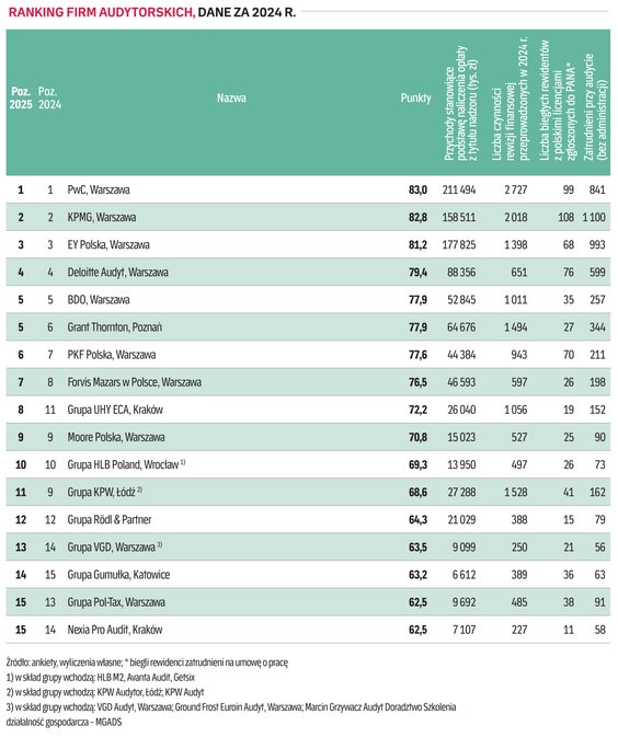 - liczba biegłych rewidentów z polskimi licencjami – waga 20 proc.,