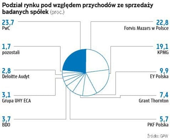 - przychody firmy z tytułu badania sprawozdań finansowych spółek giełdowych – waga 20 proc.