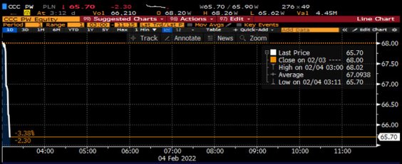 CCC najsłabszym ogniwem WIG20. Indeks schodzi pod kreskę