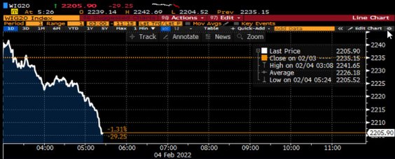 WIG20 jest dziś w gronie liderów pod względem spadków w Europie