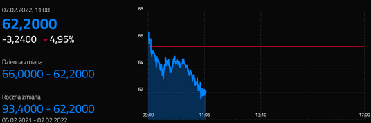 To już piąta spadkowa sesja z rzędu, a kurs spółki znajduje się najniżej od jesieni 2020 roku.