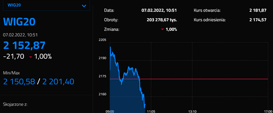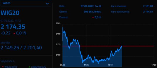 Ciężarem dla WIG20 są zniżkujące walory spółek paliwowych: PKN Orlen i Lotosu. Chętnie pozbywano się również akcji Allegro. Mimo obiecującego startu sesji sprzedający uaktywnili się na papierach banków. Przeciwwagę stanowią dla nich drożejące walory spółek energetycznych, Dino oraz PZU.