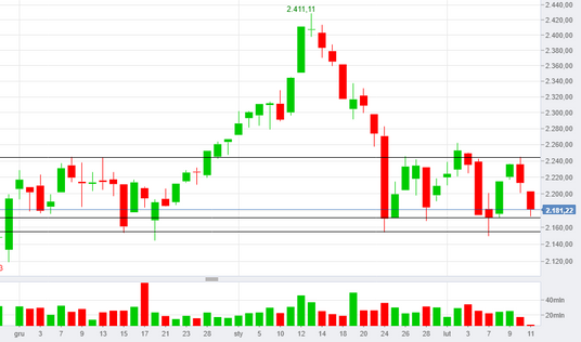 WIG20 odbija się od wsparcia wokół 2175 pkt