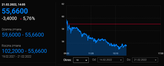 Notowania CCC spadają już o prawie 6 proc., będąc dziś najsłabszą spółką w całym WIG20. W ciągu o trzech miesięcy wycena giełdowa spółki skurczyła się o ponad połowę, a kurs jest najniżej od jesieni 2020 roku.