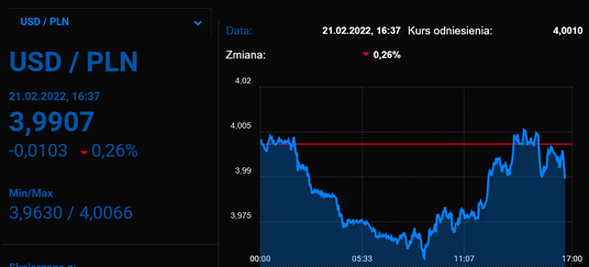 Mimo wzrostu niepewności nerwowe wahania nastrojów ominęły złotego. Co więcej, krajowa waluta okazała się mocniejsza względem najważniejszych walut. Na koniec poniedziałkowych notowań za dolara płacono ok. 3,99 zł, a euro wyceniane było nieco powyżej 4,52 zł.