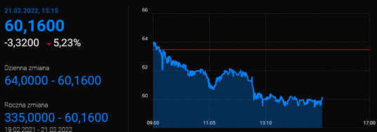 Wyprzedaż objęła wszystkie rynki akcji w Europie. Główny indeks giełdy we Frankfurcie DAX zakończył notowania spadkiem o prawie 2,1 proc., a paryski CAC40 stracił ponad 2 proc. W zdecydowanie gorszych nastrojach sesję kończą inwestorzy w Moskwie, gdzie w panice pozbywano się rosyjskich aktywów, co zepchnęło główny indeks 13 proc. w dół. Tym razem spadki ominęły amerykańskie giełdy, ale tylko dlatego, że z uwagi na święto państwowe miały dzień wolny od pracy.