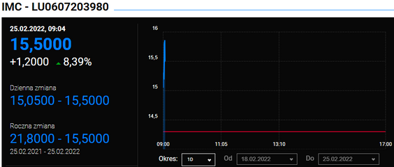 Spośród firm zgrupowanych w indeksie WIG-Ukraina najmocniejsze ponad 8 proc. odbicie widać na wykresie notowań IMC. O około 5 proc. rosną również kursy Kernela oraz Agrotonu. Znaczące, ponad 30 proc. spadki kontynuuje Coal Energy, którego aktywa są szczególnie blisko wojennych działań.