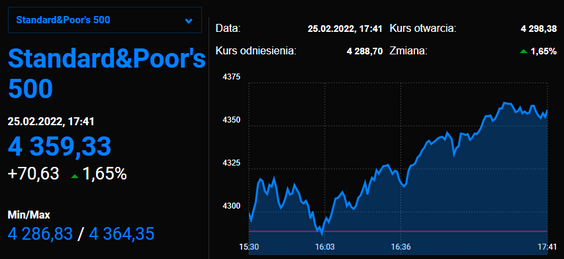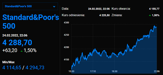 Indeks S&P 500 zyskał 2,24 proc. proc., Dow Jones Industrial w górę o 2,51 proc., a Nasdaq Comp. 1,4 proc.na plusie.