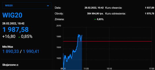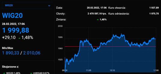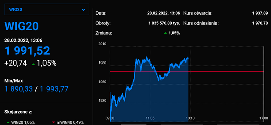 Bank Rosji podwyższył główną stopę procentową z 9,5 proc. do 20 proc. Wprowadził dla inwestorów zagranicznych zakaz sprzedaży rosyjskich papierów wartościowych.