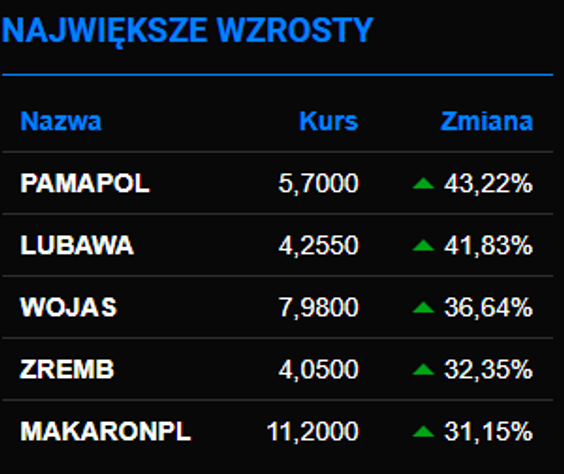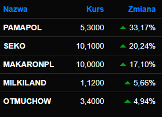 Kupujący upodobali sobie Pamapol, Makarony Polskie oraz Gobarto. Z kolei chętnych do zakupu papierów producenta ryb w puszkach Seko było tak wielu, że w środę notowania nie mogły się otworzyć. Wczoraj cena akcji firmy rosła o ponad 20 proc.