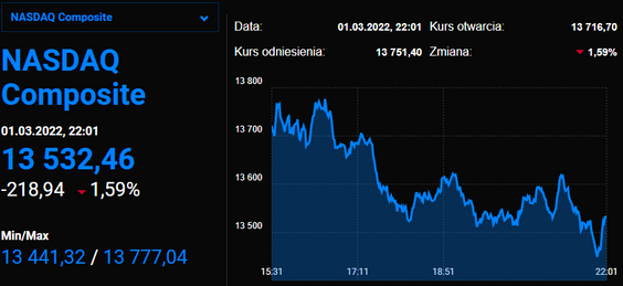 Kontrakty futures dotyczące baryłki ropy WTI podskoczyły o 8 proc. do 112,5 dolarów, ceny najwyższej od 2011 r. Jest to efekt wojny w Ukrainie. Cen nie obniżyły także decyzje OPEC.