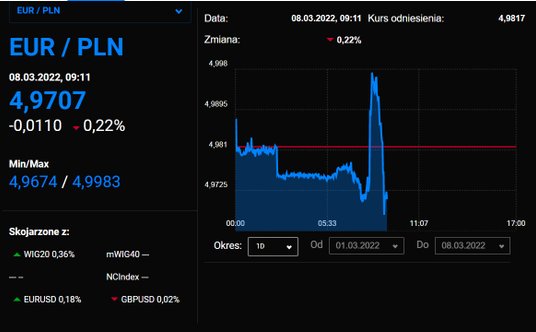 Euro przy 5 zł, ceny surowców nadal mkną w górę. Trudne zadanie przed RPP