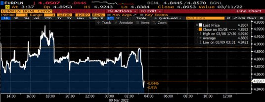 Na dziś na godz. 15:00 zaplanowana jest konferencja prezesa Narodowego Banku Polskiego, która zdaniem ekspertów może być okazją do określenia zmian w perspektywach polityki pieniężnej w związku z wybuchem wojny, bardzo słabym kursem złotego i dużą rewizją w górę ścieżki inflacji w projekcji marcowej.