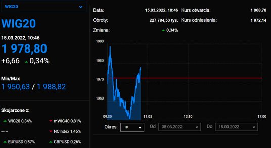 Wzrostowa sesja na GPW. Indeks największych spółek zakończył dzień na plusie, ale ostatecznie nie udało mu się zdobyć poziomu 2000 pkt.