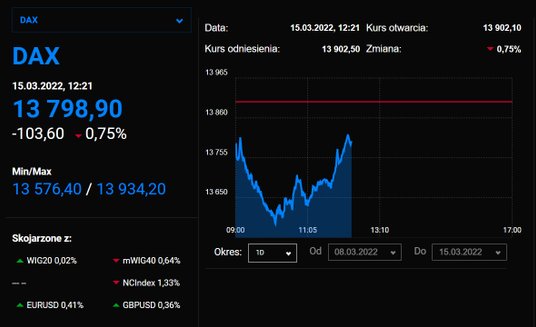 O ile wczoraj WIG20 był wyraźnie słabszy od większości europejskich indeksów, tak dzisiaj kolor czerwony dominuję na większości rynków. Niemiecki DAX traci już 1,4 proc. Podobną skalę przeceny widzimy również we Francji. Ponad 1 proc. traci też hiszpański Ibex35.