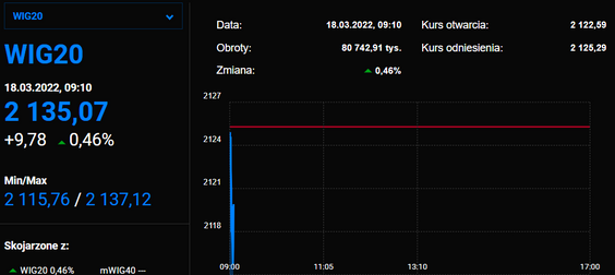 Indeks WIG20 rozpoczął dzień od 0,5 proc. wzrostów. Dzisiejsza sesja nazywana "dniem trzech wiedźm" może przynieść sporo zmienności, ponieważ wiąże się z wygasaniem kontraktów terminowych. Warto również pamiętać, że na koniec sesji dojdzie do roszad w najważniejszych giełdowych indeksach. Eksperci oczekują, że do WIG20 wejdą dwa banki: mBank oraz Alior Bank i zastąpią w nim Taurona oraz Mercatora Medical.