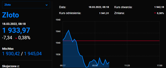 Rodzima waluta słabła o poranku zarówno względem dolara jak i euro o odpowiednio 0,4 proc. i 0,2 proc. Za amerykańską walutę płacono 4,23 zł, a euro - 4,69 zł. Notowania ropy WTI puchły o ponad 2,3 proc. do 105 dolarów. W ostatnich dniach z kolei traciło złoto i dziś kontynuuje trend oddalania się od poziomu 2 tys. dolarów. Przed godziną 9 notowania spadały o 0,4 proc. do 1933 dolarów.
