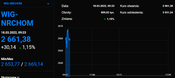 O poranku mocno zyskuje branżowy indeks WIG-nieruchomości, a to za sprawą drożejących akcji Atalu i Marvipolu, które pokazały wyniki dotyczące ubiegłego roku. Zysk netto pierwszej z wymienionych firm podskoczył względem 2020 r. z 167 mln zł do 331 mln zł, a drugiej - z 80 mln zł do 95 mln zł.