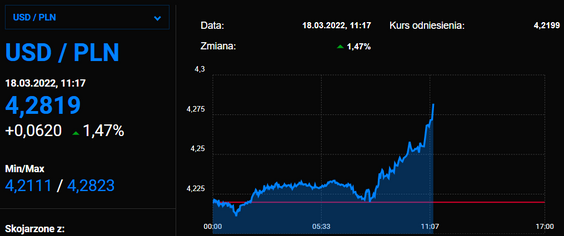 Od początku dnia złoty nie prezentował dobrej formy, teraz jednak spadki pogłębiły się. Za euro płacono przed południem niemal 4,73 zł, a dolara - 4,27 zł.