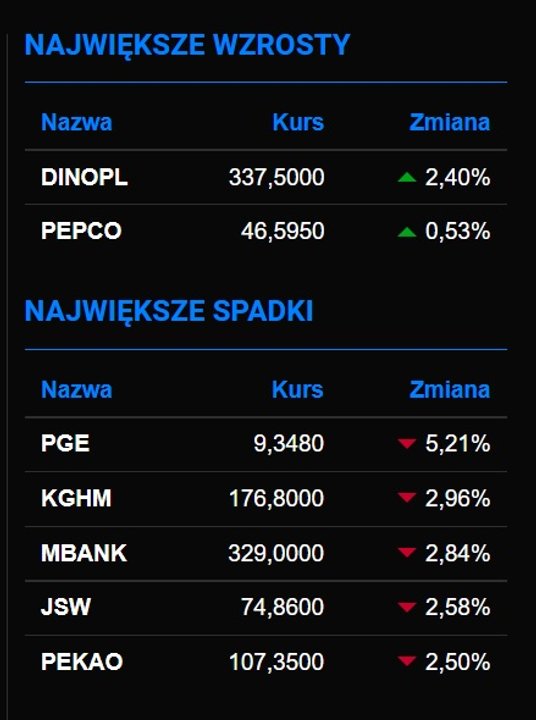 Pogorszenie nastrojów na GPW. PGE mocno traci