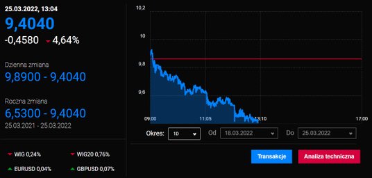 Akcje spółki drożeją dzisiaj o ponad 9 proc. To druga w ostatnim czasie tak mocna sesja w wykonaniu walorów tej spółki. W między czasie spółka opublikowała wyniki za 2021 r. Te okazały się wyraźnie lepsze niż w 2020 r.