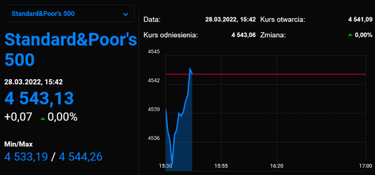 S&P 500 zyskał dziś 0,71 proc., kończąc na poziomie 4575,43 pkt. Nasdaq Composite urósł o 1,30 proc., a Dow Jones Industrial Average tylko 0,26 proc.