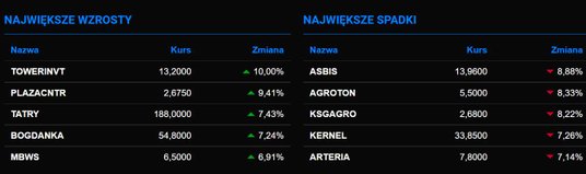 Na szczycie tabeli wzrostów wśród spółek z głównego parkietu GPW jest Tower Investments. Najgorzej radzi sobie Asbis.
